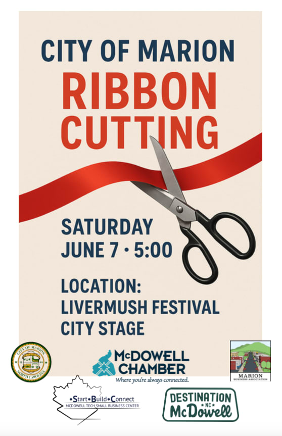On Saturday, June 7th at 5:00 PM, something BIG is happening in McDowell County — and we want you to be with us. At the Livermush Festival City Stage, we’re hosting a City of Marion Ribbon Cutting unlike any other. This isn’t just a ribbon cutting. This is a community-wide celebration of resilience, renewal, and rebirth following the devastation of Hurricane Helene. Led by the McDowell Chamber of Commerce, in partnership with the City of Marion, Marion Business Association, MTCC’s Small Business Center, and McDowell Tourism, this event marks a defining moment: 👉 The turning of a page. 👉 A symbol of strength. 👉 And the start of our next chapter. Let’s show up — and show out. We need a big, joyful, united crowd. This event is our collective exhale — a visible, joyful reminder that McDowell is not just recovering, but transforming. Please invite your friends, family, association members, board members, team members, and neighbors. Please invite EVERYONE! Let’s pack Main Street with people who believe in McDowell and are ready to celebrate its future. Let’s make it loud. Let’s make it proud. And let’s remind the world what it looks like when a community comes back stronger—together. We’ll see you there.Images