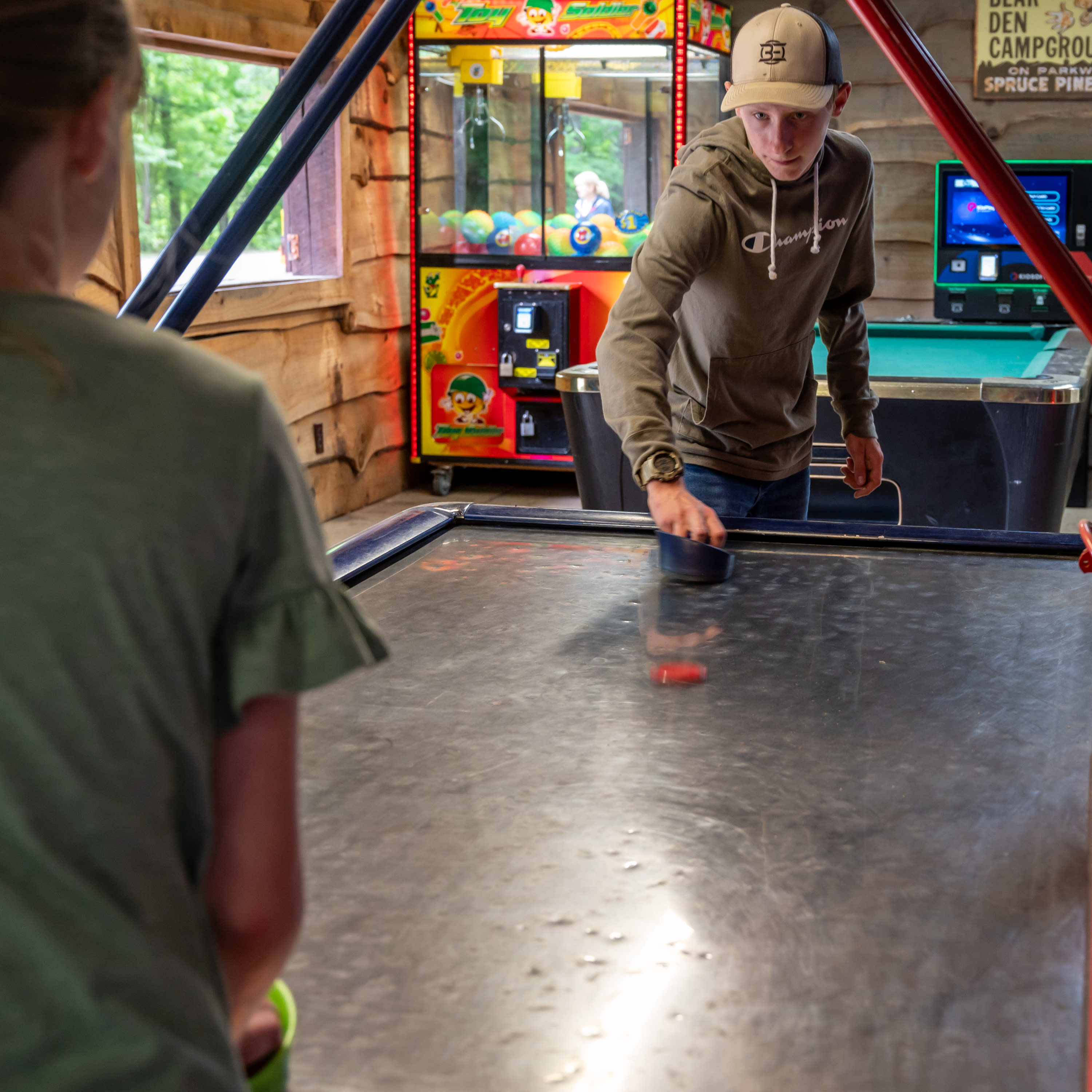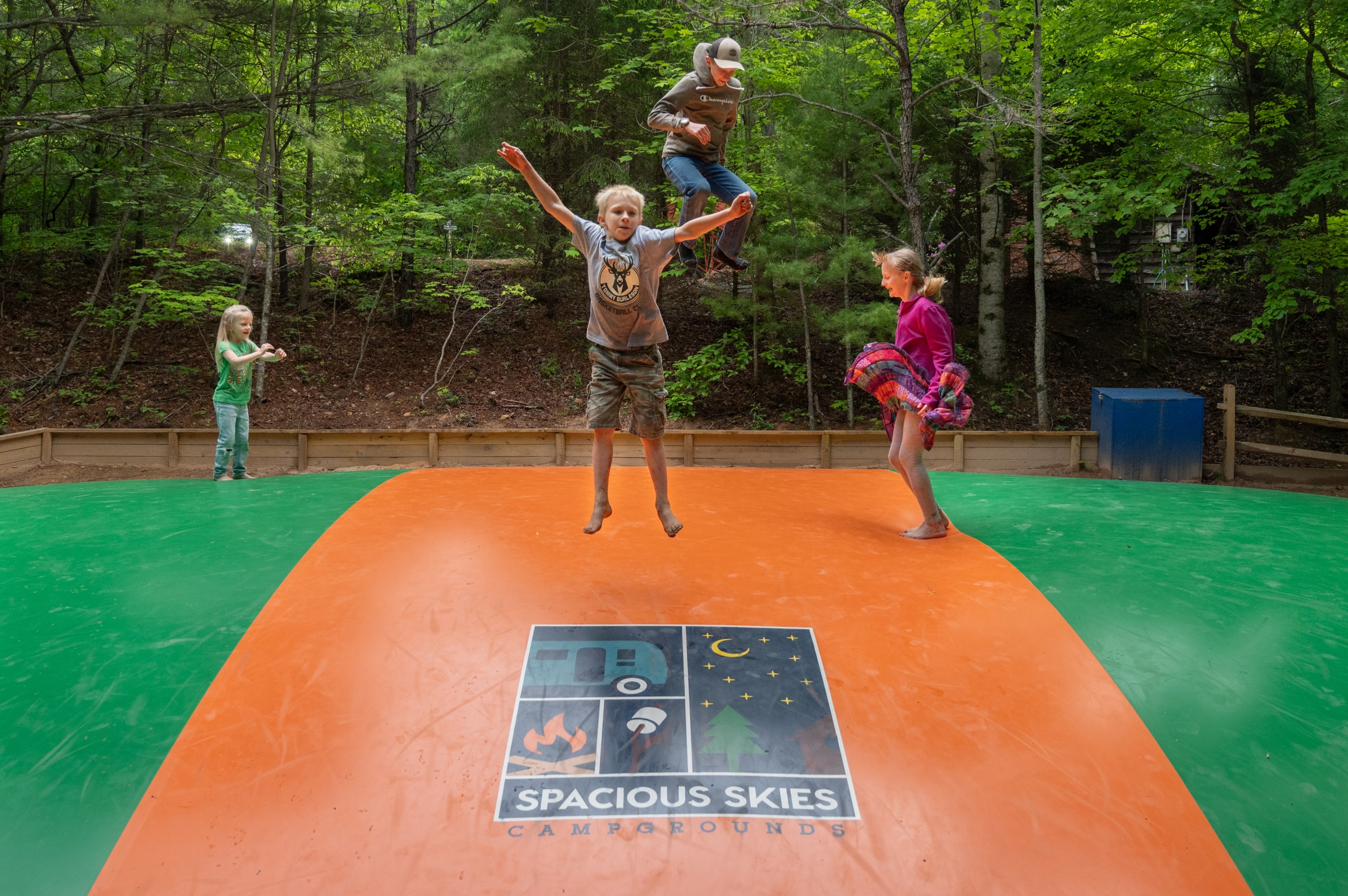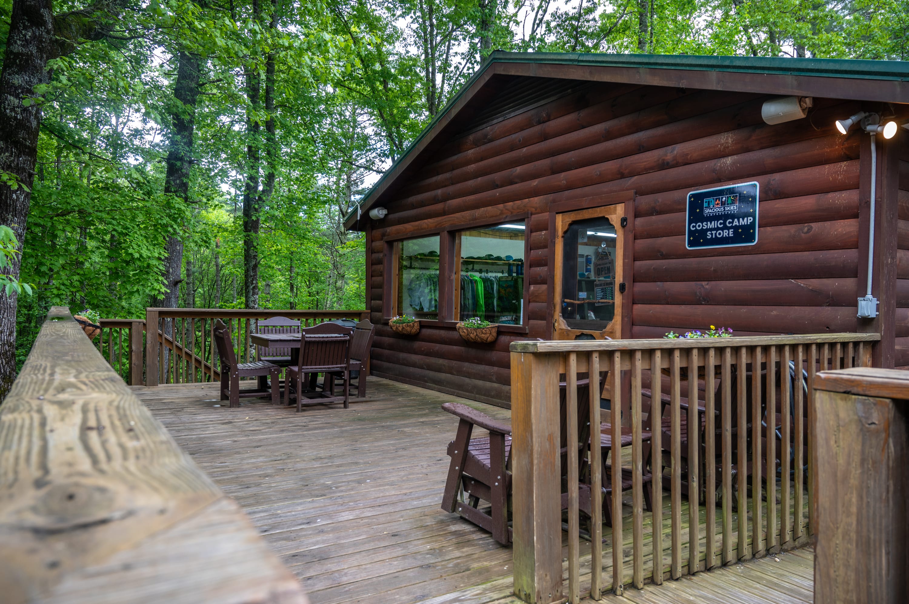 Spacious Skies Bear Den is set right off the Blue Ridge Parkway at Milepost 324.8, among the breathtaking Blue Ridge and Black Mountains and nestled in the Pisgah National Forest, Spacious Skies Bear Den is your mountain adventure destination! When you arrive at your site or cabin, breathe in the serene beauty of the Pisgah National Forest, of which Spacious Skies Bear Den is a part. Leave your stress behind as you explore 13 miles of wooded hiking trails, some leading to waterfalls on the park grounds. Playgrounds, a rec hall, arcade, basketball, volleyball, and a swimming lake with a separate fishing area will keep campers of all ages occupied. A camp store stocked with necessities and treats alike, bathhouses, laundry on-site and WIFI all bring the comforts of home to your campsite.