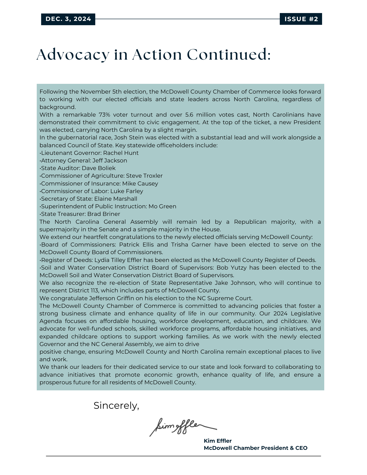 Advocacy in Action - Issue #2 Back to News Advocacy in Action - Issue #2 By Kim Effler 12/11/2024 Advoacy Economic Community Chamber Images × Share × Email Facebook LinkedIn X Pinterest Powered By GrowthZone
